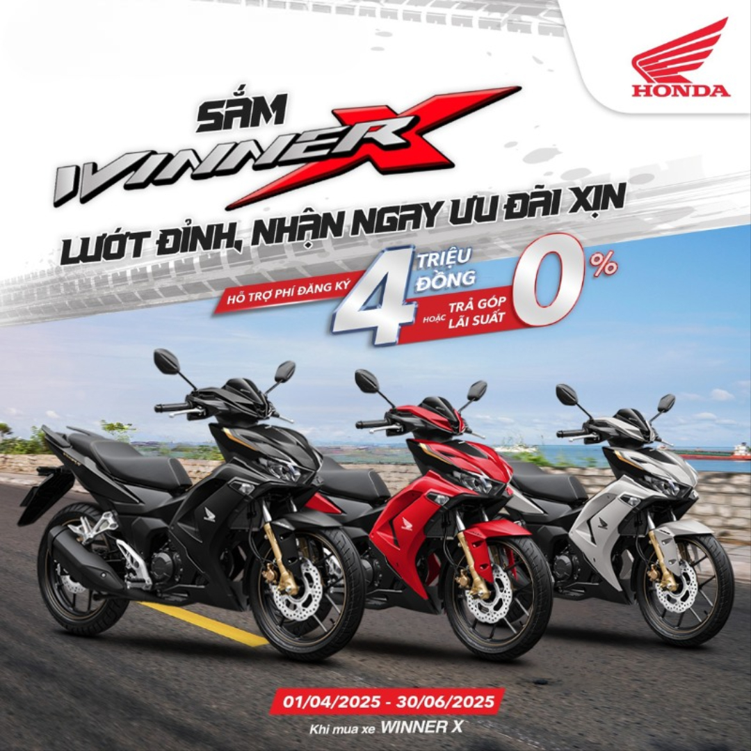 * Tiếp lửa cho hành trình chinh phục, Honda Việt Nam mang đến chương trình khuyến mãi đặc biệt “Ưu đãi đỉnh – Định chất X” dành riêng cho những tín đồ đam mê tốc độ cùng “chiến mã” Winner X.